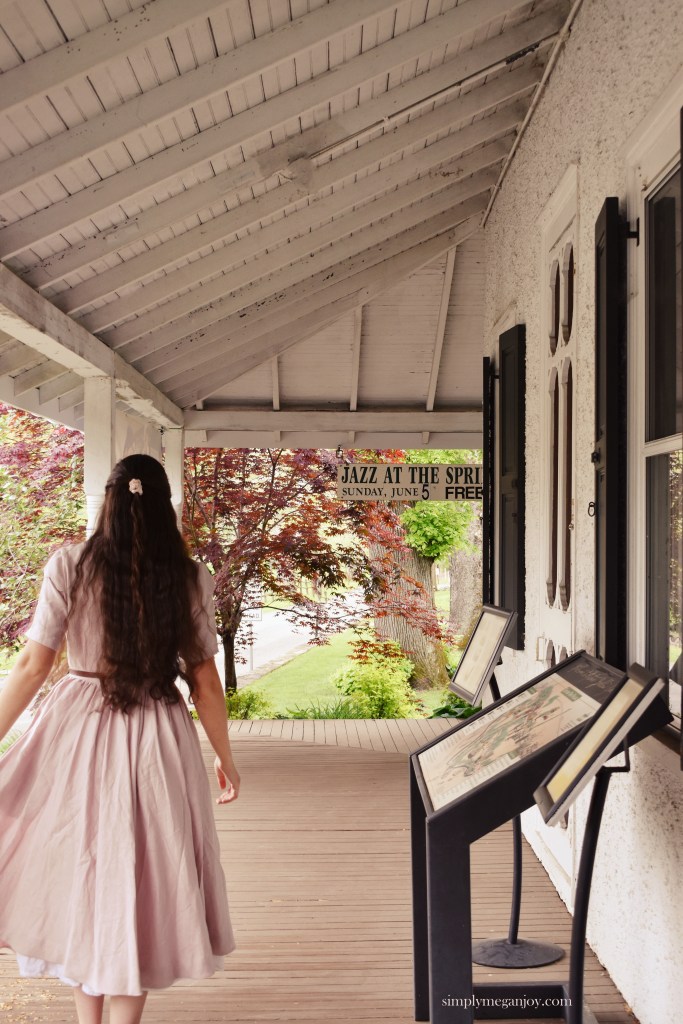 There was no particular decade to this outfit, it was a more of a mish-mash. . . pardon me, a “collection” of different decades. The dress was given to me by a friend (thanks Miss Sue) and I altered it a bit to make it appear more vintage. I’d like to think that it could fit into either the 30s, or 40s. However, some of these photos remind me of ones from the 1970s. Let’s just say, I was a time traveler that day.