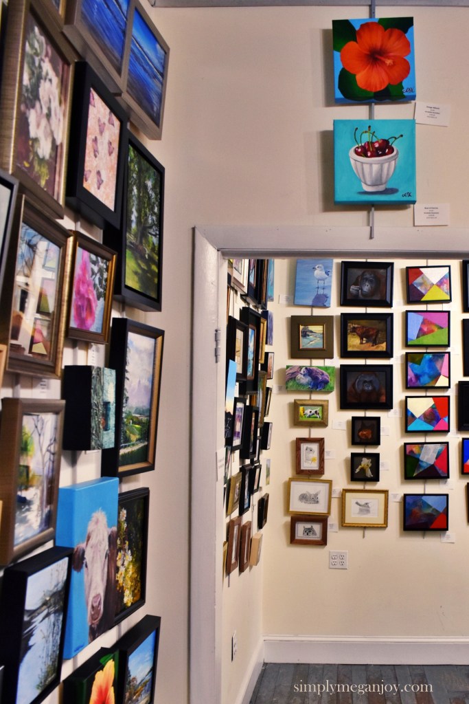 The first floor of the building is where the larger (and most sizably priced) art pieces are displayed, many by well-known artists from the area. Room after room full of art, some old and some new. I wish I had remembered to choose my favorite among them, but I was too busy sneezing, I think. These photos are from upstairs, where the smaller pieces are kept. Some of them are so pretty, I’d like to fill an entire bedroom wall with tiny little frames, instead of wallpaper. And I would paint them myself in order to make that happen, however, I have no talent for painting. Truely, it’s something I am absolutely no good at. (Insert a horrified Lady Catherine de Bourgh scoffing at the fact that I do not draw).